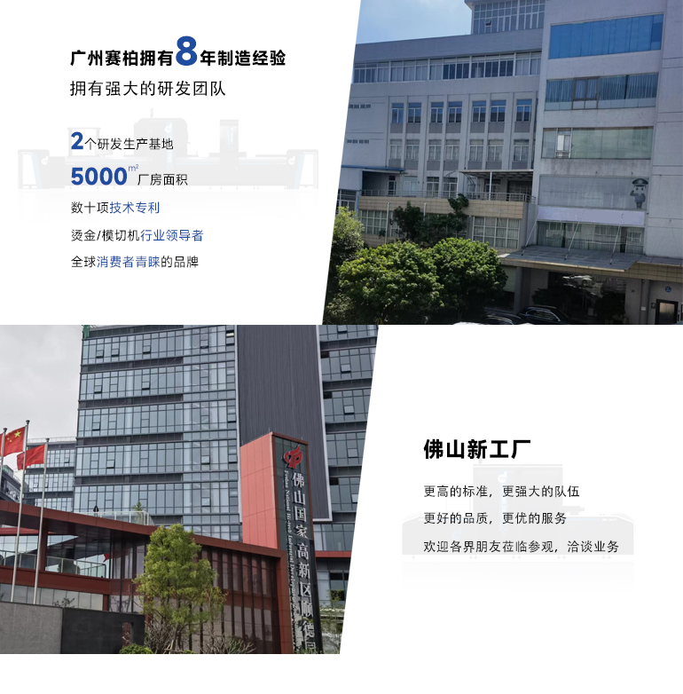廣州市賽柏精密機(jī)械有限公司是一家專業(yè)從事高端自動(dòng)化設(shè)備定制設(shè)計(jì)的創(chuàng)新型企業(yè),成立于2015年,坐落在廣州市番禺區(qū)美麗的沙灣鎮(zhèn)古鎮(zhèn), 新廠房位于佛山順德北滘。公司擁有一批專業(yè)從事工藝及定制設(shè)計(jì)經(jīng)驗(yàn)豐富的技術(shù)人才,并與多家科研院校有著緊密配合。產(chǎn)品有:多功能印刷設(shè)備(柔印/凹印/絲印)、智能標(biāo)簽(RFID)、視覺檢測(cè)、2D/3D燙金、可變數(shù)字燙金設(shè)備,窄幅多功能涂布模切設(shè)備、多功能印后加工設(shè)備等,在以上領(lǐng)域及高端設(shè)備改裝升級(jí)等方面有著豐富的應(yīng)用技術(shù)和實(shí)踐經(jīng)驗(yàn)。